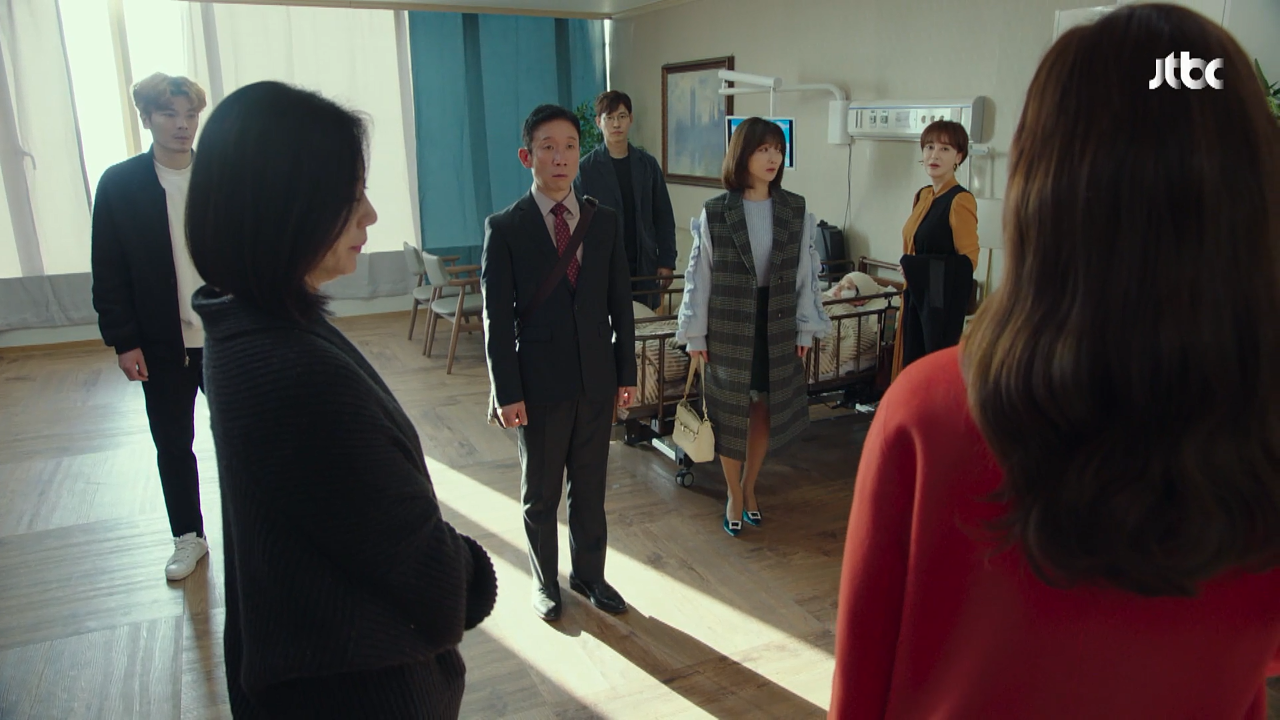 다음날 병문안을 온 조형우(김성오), 강경자(김혜은), 박춘복(정석용). 유은실(이인혜) 속에 백해숙(한다감)은 병실 앞에서 캐리어를 가지고 서성이고 있었다. 이내 남정해가 백해숙을 병실로 들어오게 한다. 다른 네사람은 두사람을 위해 자리를 피한다.