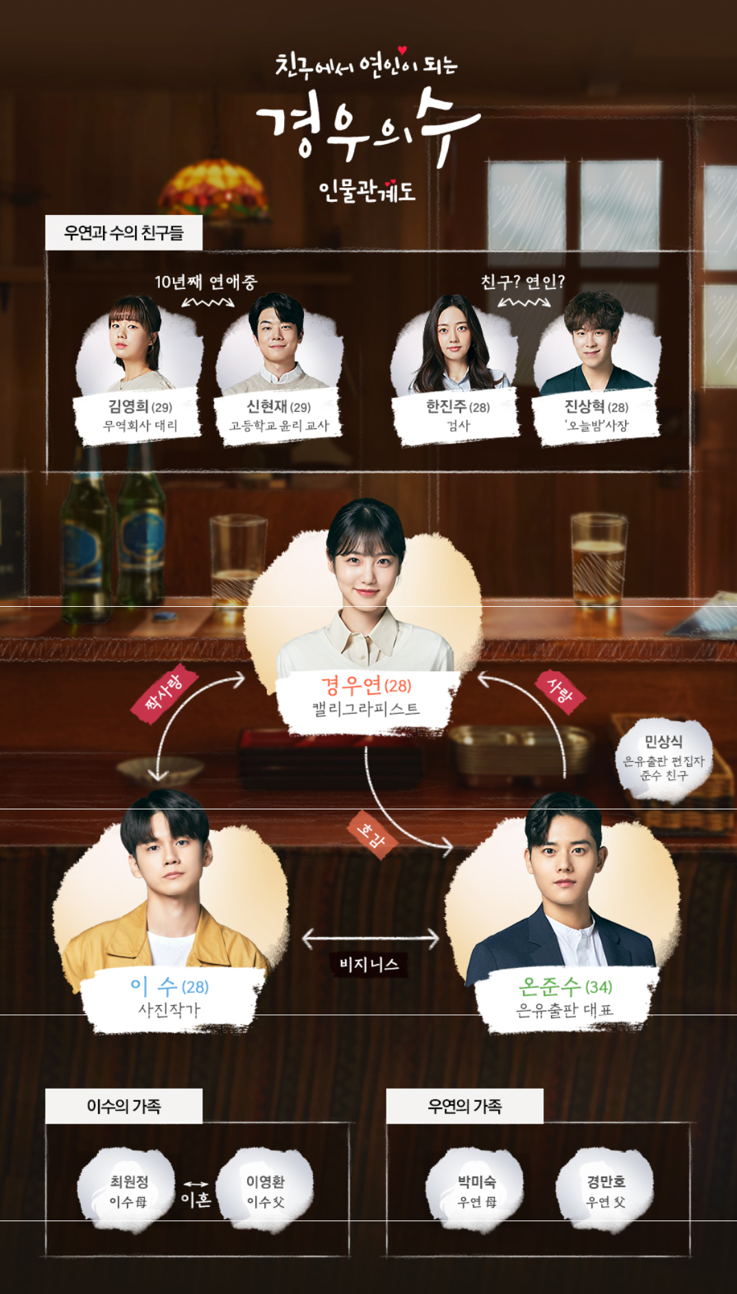 배우들 ? 경우연 역할_신예은 / 이수 역할_옹성우 / 온준수 역할_김동준 / 김영희 역할_안은진 / 한진주 역할_백수민 / 신현재 역할_최찬호 / 진상혁 역할_표지훈 / 이영환 역할_안내상 / 최원정 역할_김희정 / 박미숙 역할_조련 / 경만호 역할_서상원 / 오윤자 역할_윤복인 / 민상식 역할_오희준 / 김철수 역할_김달율